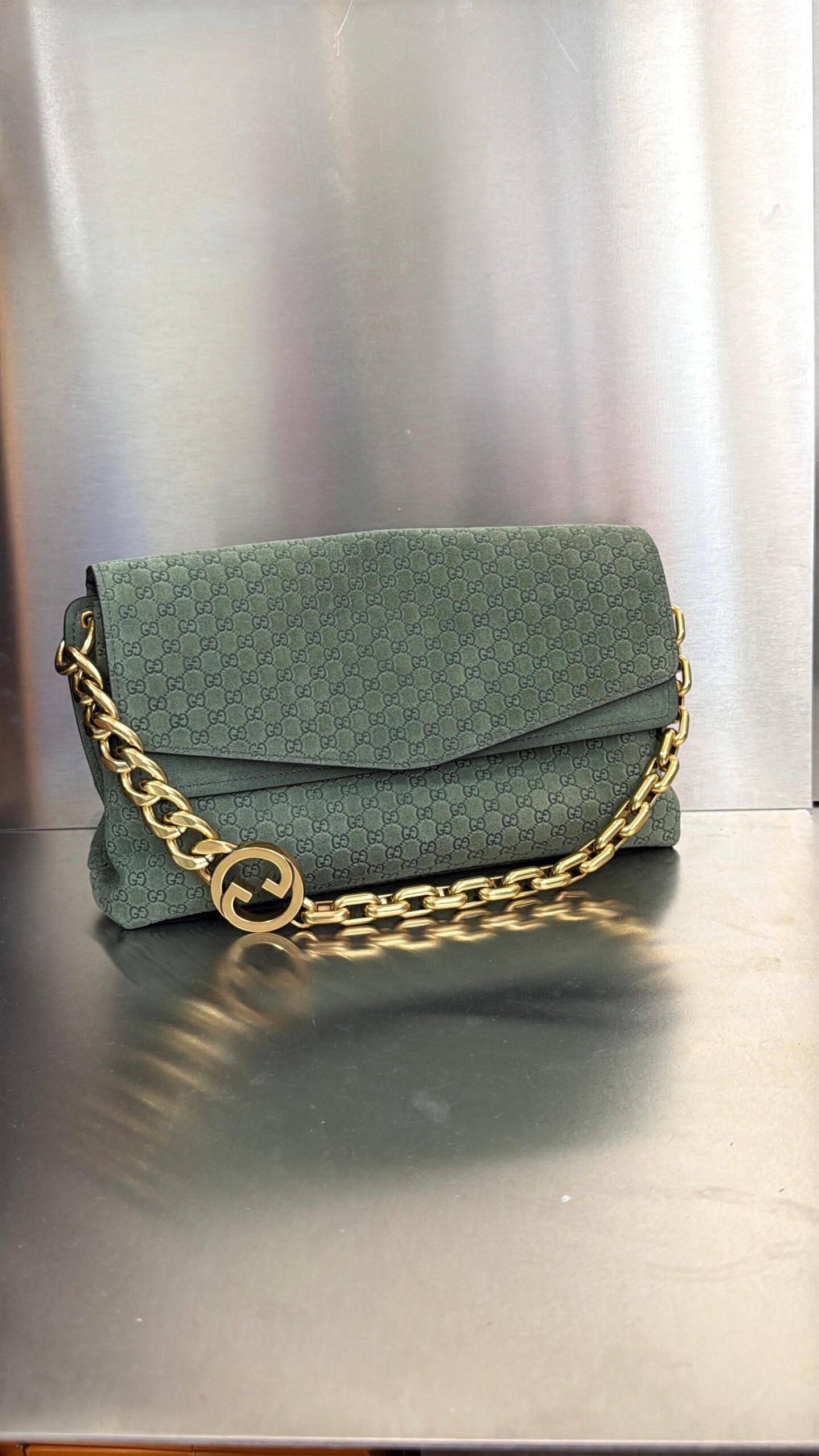 Bolsa Gucci Ombro Com Corrente Camurça