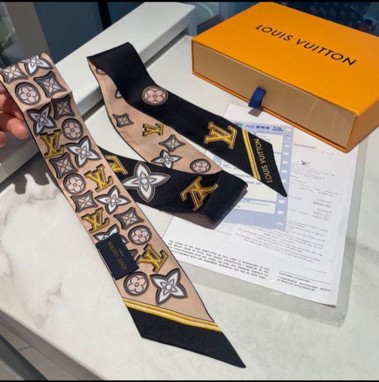 Bandeau Louis Vuitton, um acessório elegante que pode ser usado de diversas formas.